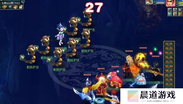 1、玩家杀完15个蛇妖喽啰后场景里会出现4个【红磷蛇妖】随便选一个;