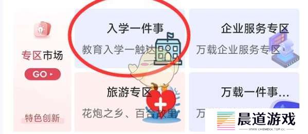 2、下拉手机页面,找到“入学一件事”,点击进入。