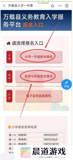 3、选择“小学一年级新生报名”或“初中七年级新生报名”进入。