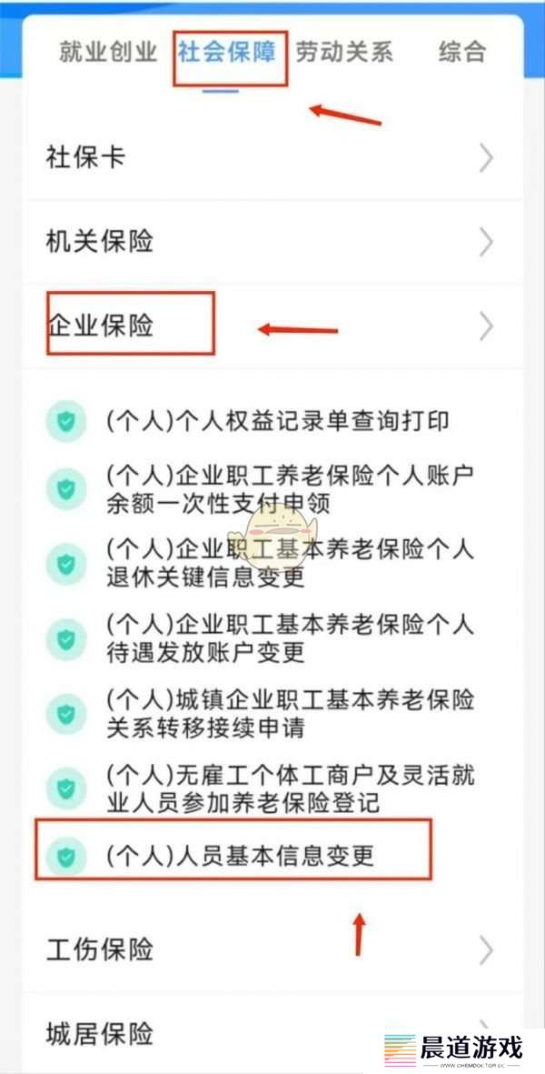 3、点击社会保障→企业保险→点击(个人)人员基本信息变更;
