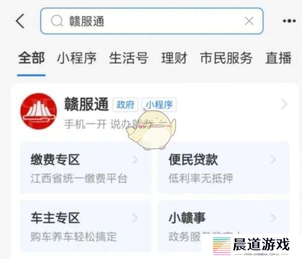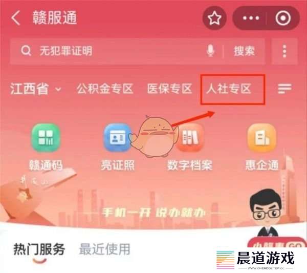 1、参保人打开支付宝App,进入赣服通平台小程序,点击人社专区或搜索人社;