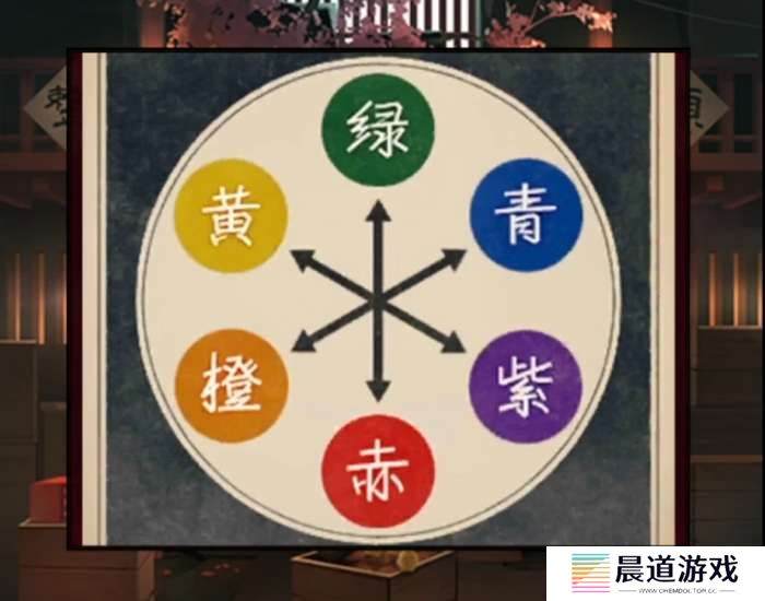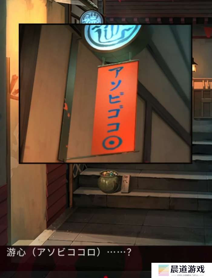 口的位置其实是有提示的,这里特地标注了片假名,对比一下就能发现翻译和上面招牌唯一不一样的地方就是口和圆圈了,这个虽然看起来很深但是的确是蓝色的,也就是说口对应的颜色是蓝色,对了在前面路过npc的时候一定要对话一下会出现剧情提示,就是关于我们最后如此选择的提示哦~