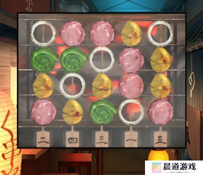先拿走炉子上面的扇子,查看一下正在烤的串串使用扇子后就能看清了,下面的串串顺序打乱了,而且非常明显的洋葱圈圈肯定是有什么用处的,所以记一下1-4,2-1,3-2,4-3,5-1从烤炉后面左边的柜子拿到餐盒,这餐盒上字真多啊,查看一下1-4感,2-1谢,3-2您,4-3光,5-1顾,查看一下右侧的柜子竟然有密码锁,调整为感谢您光顾后柜子打开拿到筷子,和旁边npc对话后就需要去送外卖了。