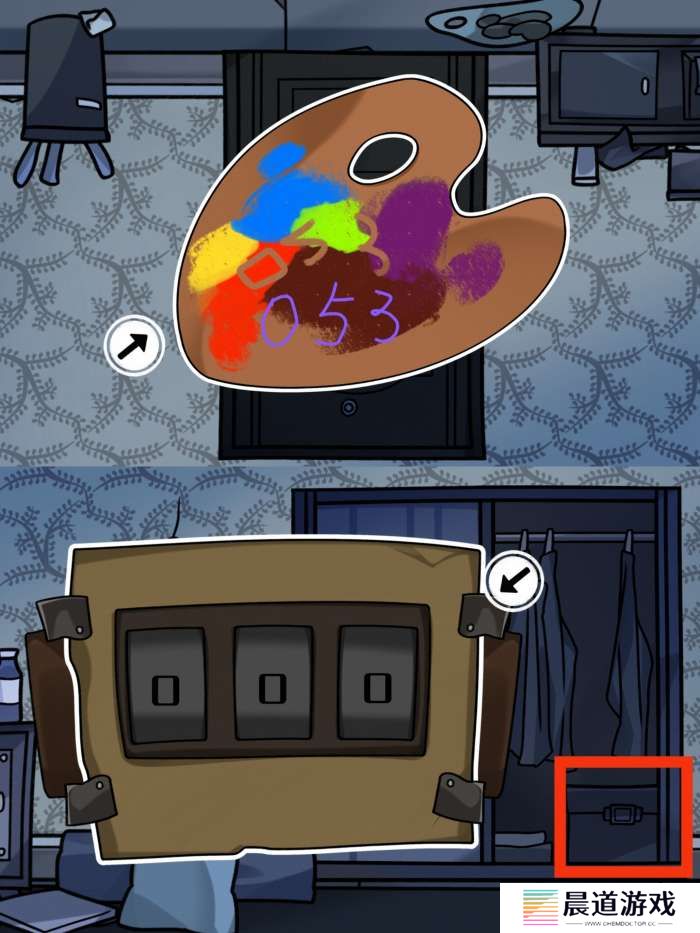 门口边上的画板过来得出密码053打开衣柜中的密码盒