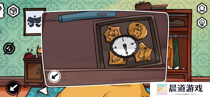 打开后对里面的钟表使用之前拿到的分针根据电视上的线索将指针调到正确位置,拿到邻居的钥匙