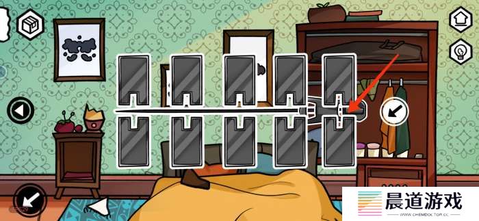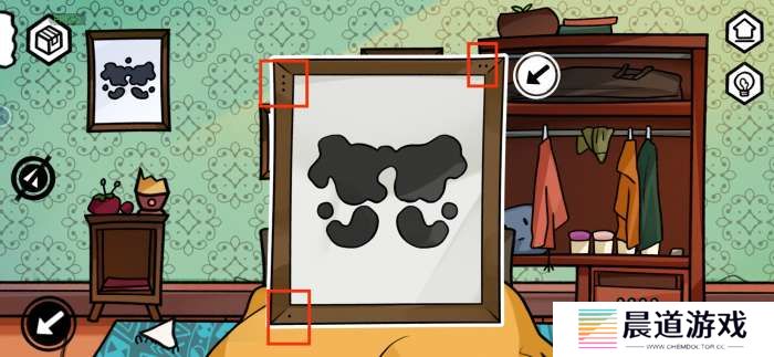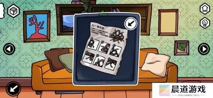 用复活钥匙打开书架下的柜子,叶子的点击顺序是卧室床边和沙发抱枕下的半张书页上的线索
