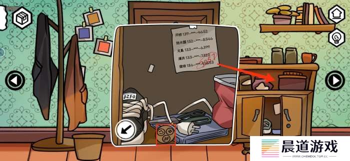 用纸条上的密码打开箱子拿到润滑油和干抹布,对柜子里的剪刀使用润滑油拿到剪刀