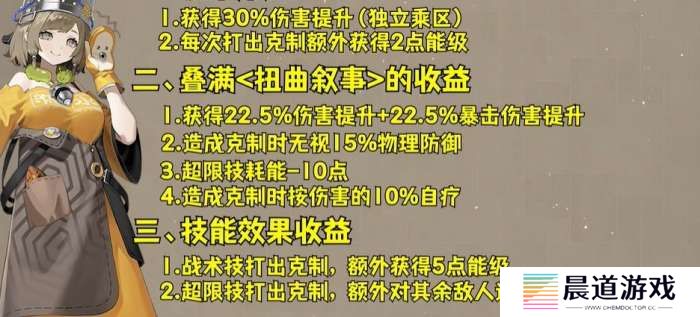 叙非是一个以克制伤害为主,非常适合爬塔活动的溅射输出角色,而自身机制还可以额外增加视为克制的概率。
