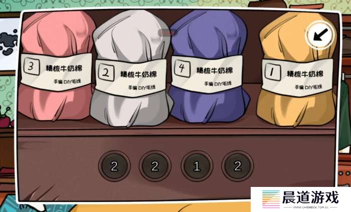 回到卧室查看衣柜下层的毛线,按照1黄色2白色3肉色4蓝色来排列的话数量分别为2221,调整下面密码为2221打不开,那么就单纯对应上面的颜色数量肉色-白色-蓝色-黄色获得密码2212,调整下面密码为2212后打开了,看到一个带了方向的圆盘,这四个图案不就是厨房柜子的门锁么,我们正好已经拿到了钥匙。