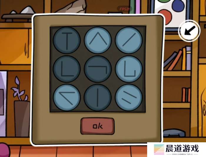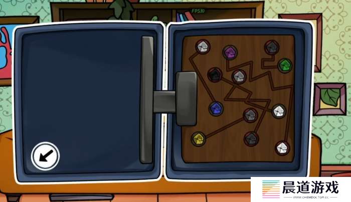 来到沙发场景把宝石都放在左下角沙发下面的玩具盒,但是我们只有一半的线索,所以还需要等一下,把方形按键放在柜子的保险箱上,仔细观察一下各种符号,多少都带有箭头或者指向性,所以就简单的按照每一个符号的指向依次点击,完成后拿到一把不知道是哪的复古钥匙。