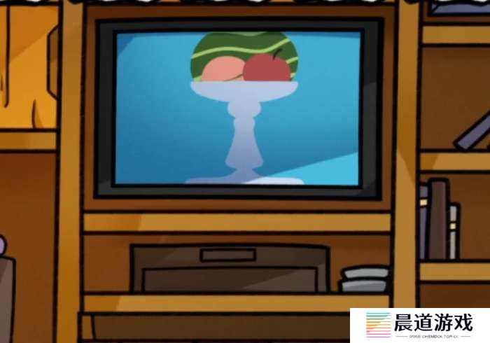 查看一下电视下面的抽屉,点击上面的数字密码35619后放入两张游戏卡,电视上开始有三个图案,都很重要!不过第一个暂时用不上,下面的两个每个果盘中都有三种水果,记下来草莓-梨-杨梅-桃-苹果-西瓜,这几个水果也有点眼熟,不就是笔记本上面的。