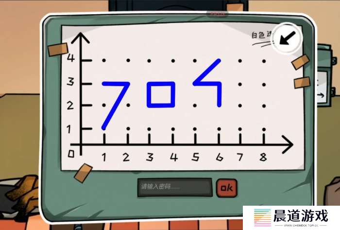 出门查看邻居门口,白色连线对应白色诗歌的诗,行吧开始连线,因为第一个数字最大是6,所以先横向再纵向找点,三行诗获得三位数字密码704,所以说尽量不要安排不能一笔画下来的数字密码啊!这4不就怪怪的了?