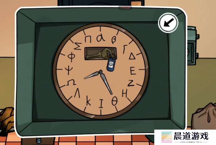 输入密码704后点击确认,又出现了个钟表,行吧我们电视上已经获得了一个算是时间的线索,调整为Ω:θ后上面暗格打开拿到一把钥匙,钥匙上面还有个气泡的标签,使用钥匙打开邻居的门就能进门了。