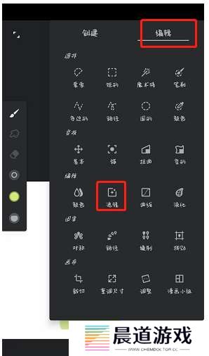 2、在右上角打开工具栏,选择编辑菜单栏下面的“滤镜”工具,在滤镜工具中,下滑找到“艺术效果”栏目。