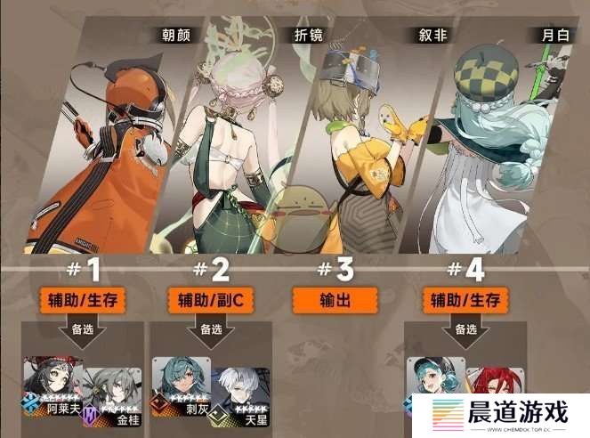 虽然很明确是<叙非>的优势环境,但毕竟活动刚开还缺少完整体验,常规推荐<朝颜+月白+副C>的组合即可,副C位置可以根据战斗环境选择对单/对群。