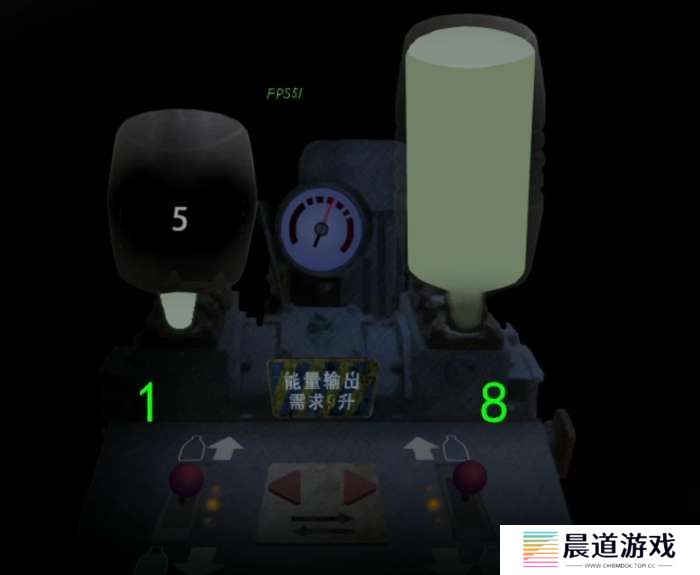 这个机关简单一说,下面的按键都能点,箭头向上是倒空,向下是装满,中间的左右箭头是向左右转移,我们需要的是9升,也就是8+1,所以我们只需要装个1升就可以了,那么顺序就是现将右边的装满,然后转移到左边,然后将左边的都倒掉,将3升转移到左边,再次把右边的装满,再次都转移到左边,这样左边有5升右边有6升,也就是把左边的倒空,然后将6转移到左边后就剩下1升了,再次倒空左边并且将宝贵的1升转移到左边,最后将8升装满即可完成。