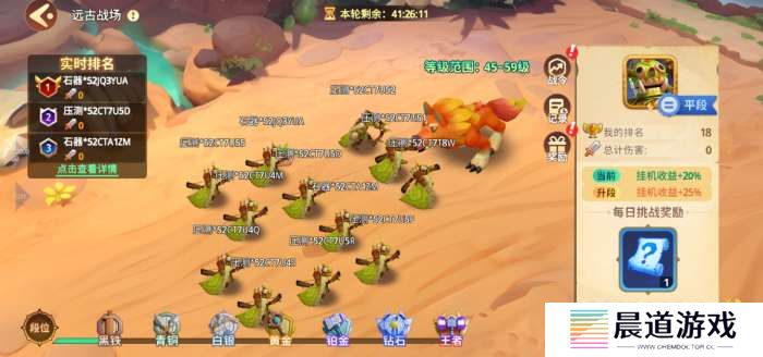 在遥远的历史中,存在一片被遗弃的远古战场。这片战场的传说承载着无数英雄的荣耀与悲壮,曾是无数强者拼搏的地方。传说,只有那些在这片战场上经历无数考验、不断晋升的勇士,才能够获得最终的远古荣耀。远古战场提升段位最高可增加50%的挂机收益,还可获得珍惜符文奖励。