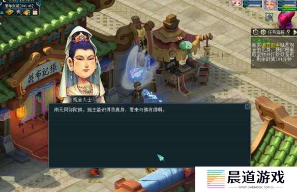 2、来到繁华京城(428.58)处等任务,只要出现观音幻化提示后在点NPC(观音大士);
