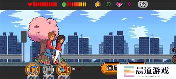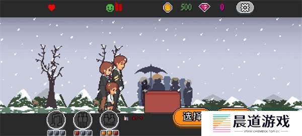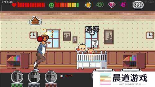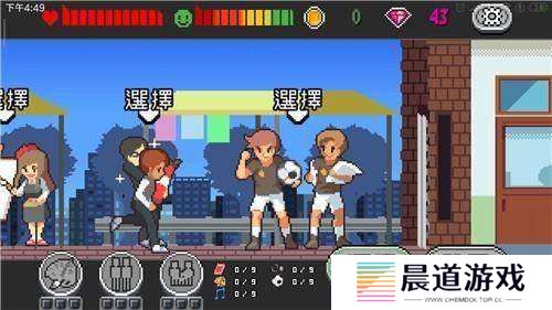 1、游戏的玩法很简单,就是横版跑酷的玩法。在游戏的右边有两个按键进行操作,一个是选择键,当你遇到某些特殊事件时,比如选择兴趣,选择对象、买车买房等等,这将影响你后面游戏的结局