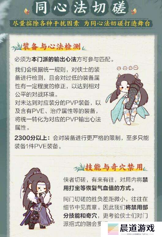 1、玩家必须使用本门派输出心法才能参与1V1匹配,属性装备过低则会自动修正;