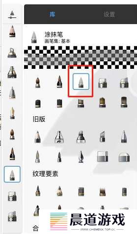 3、在左侧的【画笔库】,找到【涂抹笔】工具,然后把尺寸和不透明度调整一下,然后对需要过渡的地方进行涂抹即可,如图所示: