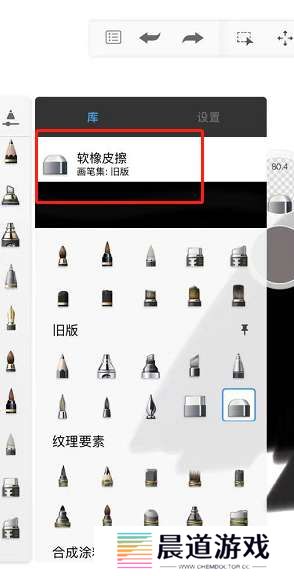 1、首先我们先打开sketchbook软件,然后进行上色,点击左侧的【画笔库】,找到【软橡皮擦】工具,如图所示: