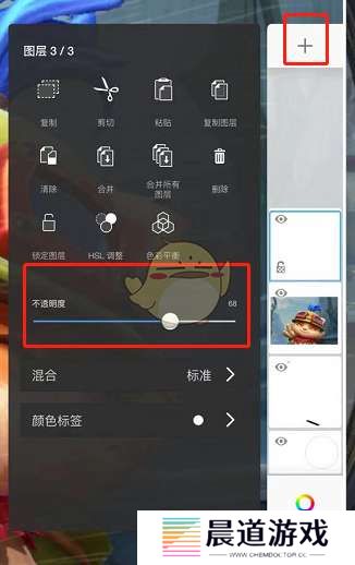 3、点击该图层,把【不透明度】调低,这样作品就自带肌理感了,需要注意,这一层需要放置在图层的最上层,防止被其他内容覆盖哦,如图所示: