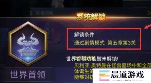 4、即可知道世界首领活动,需要通过剧情模式第5章第3关解锁