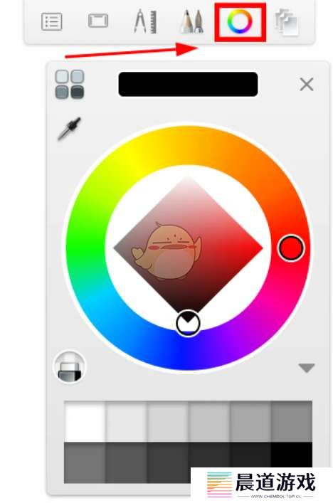 点击界面上方的“圆环”图标,会弹出颜色面板,在圆环上点击就能吸取想要的颜色。