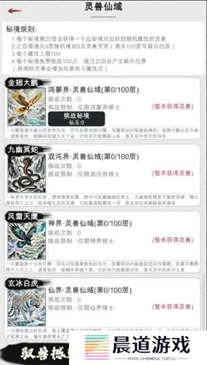 游戏按照界面来设计,目前分为凡界篇、灵界篇、仙界篇、神界篇等