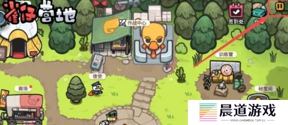 1、进入游戏后点击右上角箭头指向的按钮。