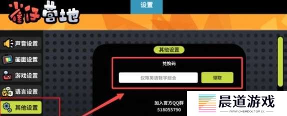 2、跳转界面后选择左侧的【其他设置】,将获得的兑换码填写至输入框并点击【领取】即可。