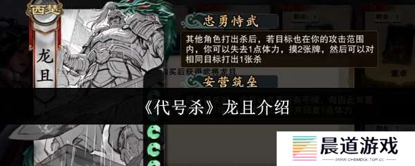 代号杀龙且怎么样?这一次小编就为各位好好介绍下龙且这名武将的技能以及他的用法,让各位能快速弄懂这名武将的玩法以及他在实战中强度,各位快来瞧瞧看吧。