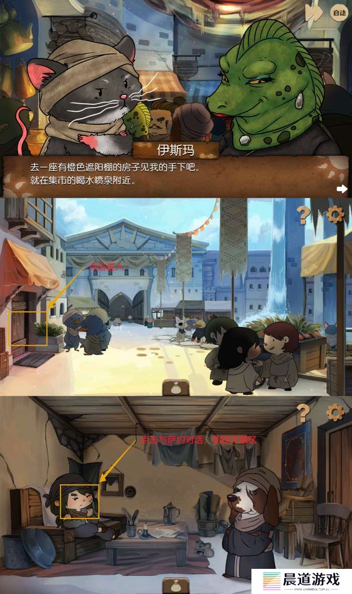 奈里在营救雷克斯两人安全回到野鸭餐馆后,雷克斯也被奈里危急时刻的不离不弃感动,真正对奈里的返回旅程上心起来。而这次,他决定求助一位故人,只是这故人看起来不甚友好....本次给大家带来了《奈里》第四章通关攻略,剧情开篇雷克斯托人将奈里送回金顶区,奈里与雷克斯需要弄到前往天课区的通行证。本篇大致流程如下:寻找伊斯玛、寻找萨约、收集粮卡(野鸭餐馆、鲍勃)、找比尔拿到帽子,与鲍勃交换获得粮卡、前往天课区。