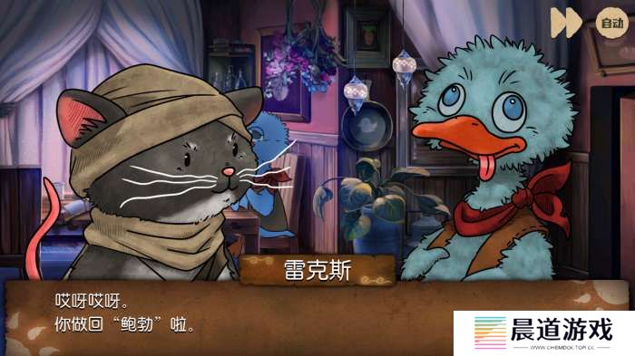 下楼找鸭子比尔,与比尔对话得知“想跟大家一样”、“喝杯那个”等信息