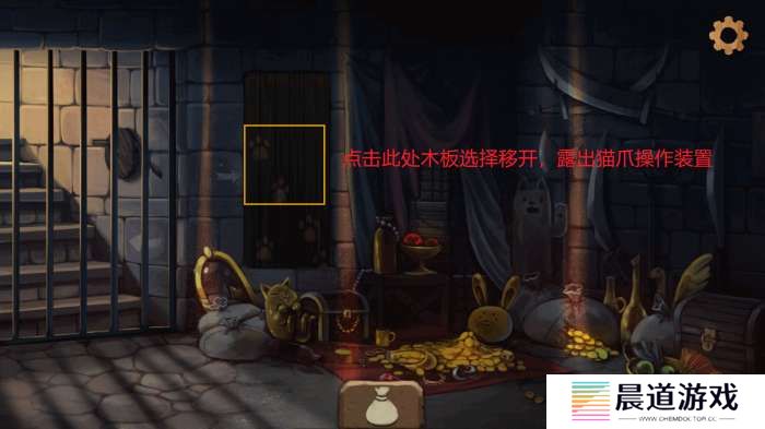 点击场景左侧木板,选择“掀开木板吧”后露出背后的绳索及装置。