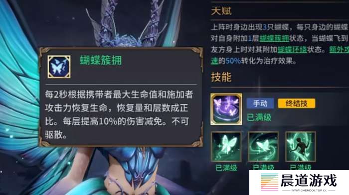 塔露拉的天赋一上场,就能看到她身边翩翩飞舞的三只蝴蝶。每只蝴蝶都会赋予塔露拉自己和队友一个叫做“蝴蝶簇拥”的状态。别看这个名字有点小清新,它的实际作用可不简单——每当蝴蝶飞到友方身上时,便会为队友带来“蝴蝶环绕”的效果。这一状态可是非常强大的,它能驱散队友身上的有害状态,让你的队友免于被负面效果折磨。