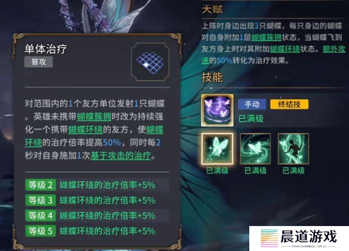 而她的被动技能“轻柔蝶翼”和“森林祝福”更是锦上添花。“轻柔蝶翼”每2秒会有50%的概率帮助队友驱散负面状态,而“森林祝福”则会赋予队友物理和魔法双重减伤效果,还能让携带“蝴蝶环绕”的单位快速恢复怒气,这也让塔露拉成为队伍中的一个怒气加油站和状态清除器。