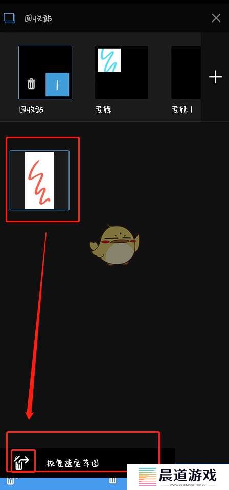 5、点击左下角的*桶箭头图标,会显示“恢复选定草图”按钮,这样我们的项目文件就会恢复到图库列表中。