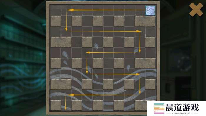 按照图示箭头走向拖动水纹滑块解谜,取出方形石块