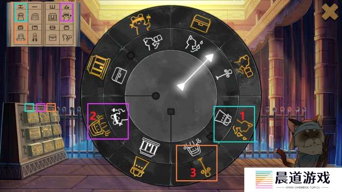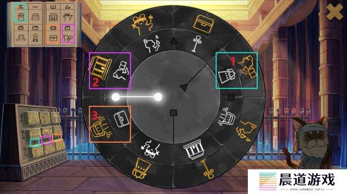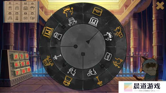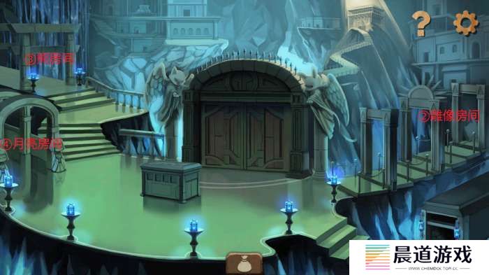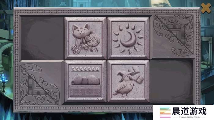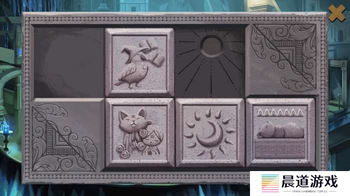 调整房间方位解谜回到中间石台座,点击可看见原有房间对应在上的形象。每个石块均可以拖动,背景底座上同样暗示了房间外部的配置。