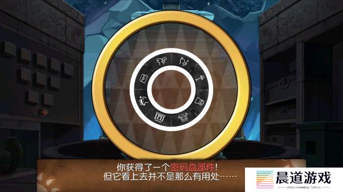 前往雕像房间,通向高处的台阶已经直达宝箱,点击宝箱获得密码盘部件