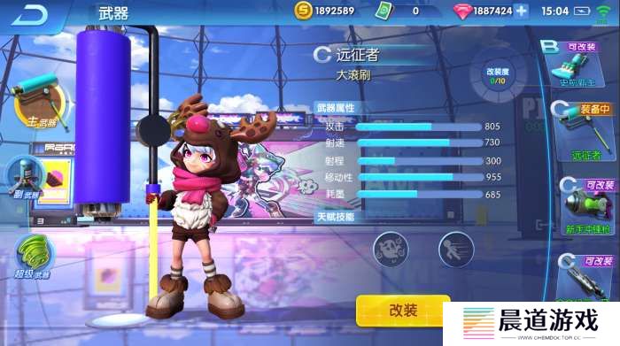 主武器在涂鸦联盟游戏战斗里,主武器是作战中主要使用的武器,每种主武器不但有酷炫的外形,其射程、攻击方式、伤害以及颜料消耗能力都是各式各样。